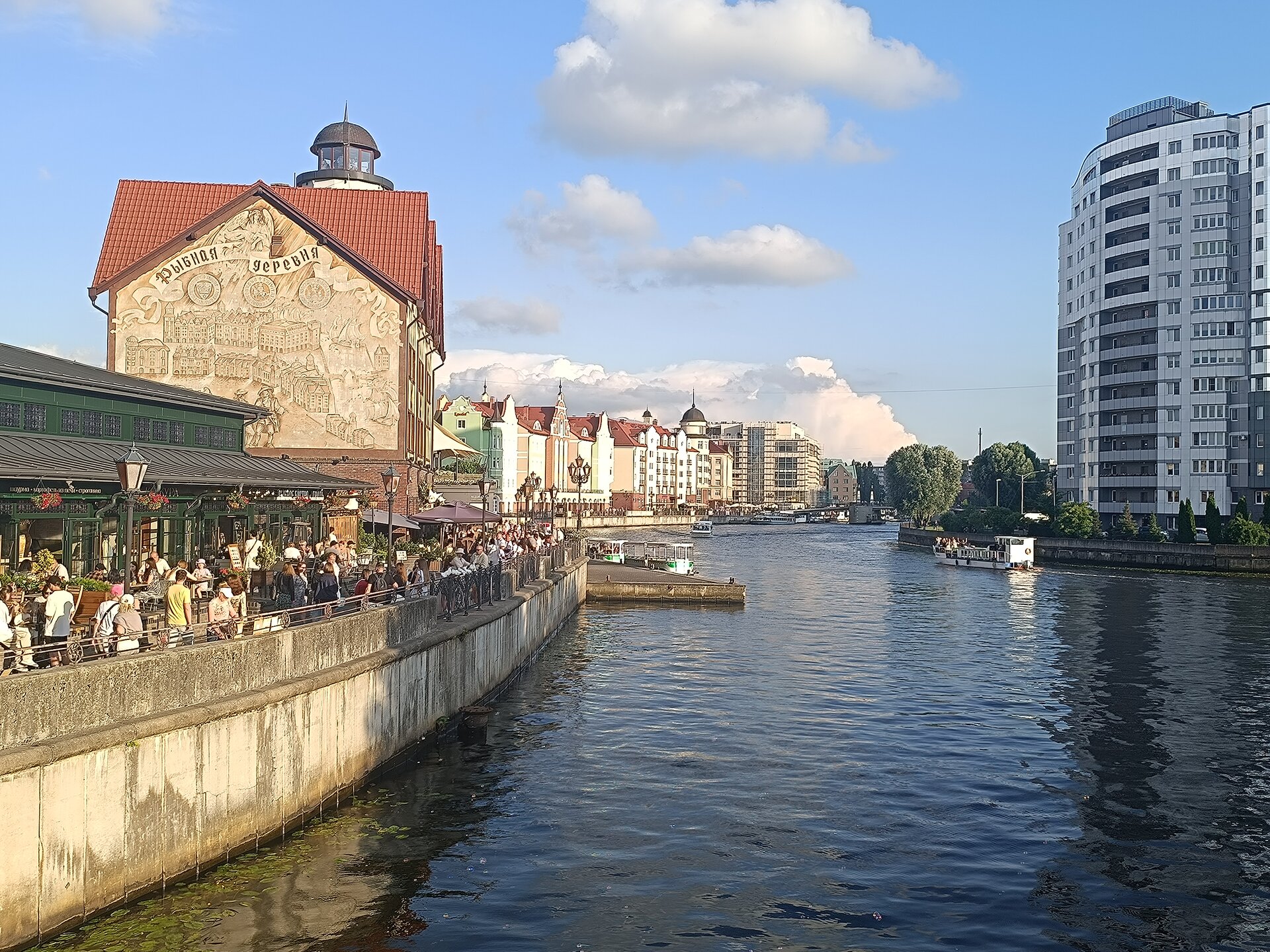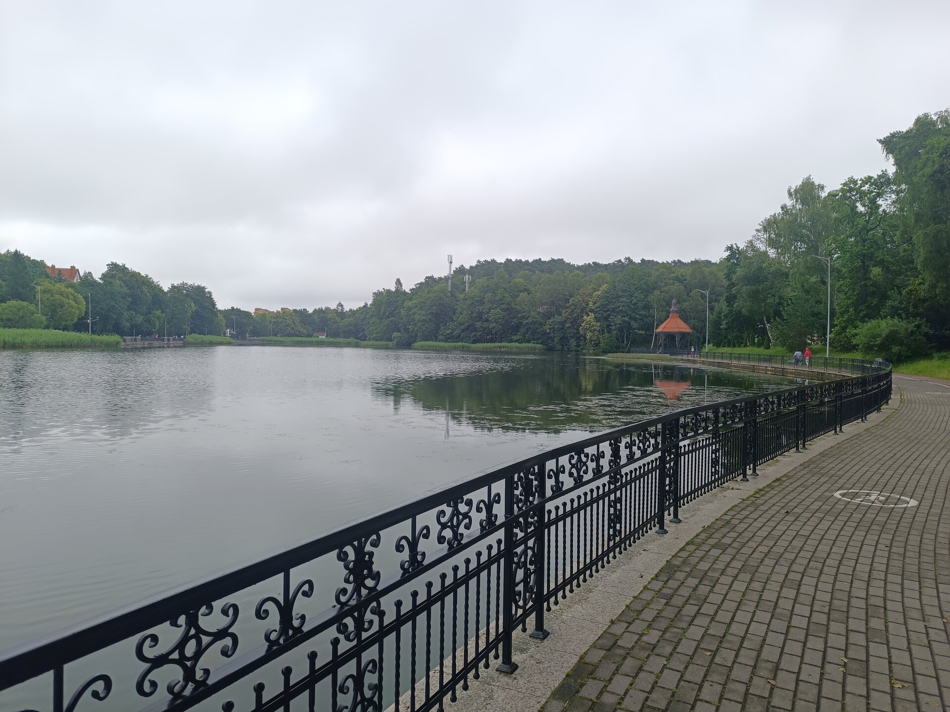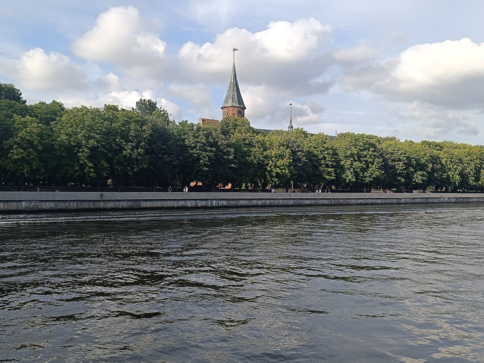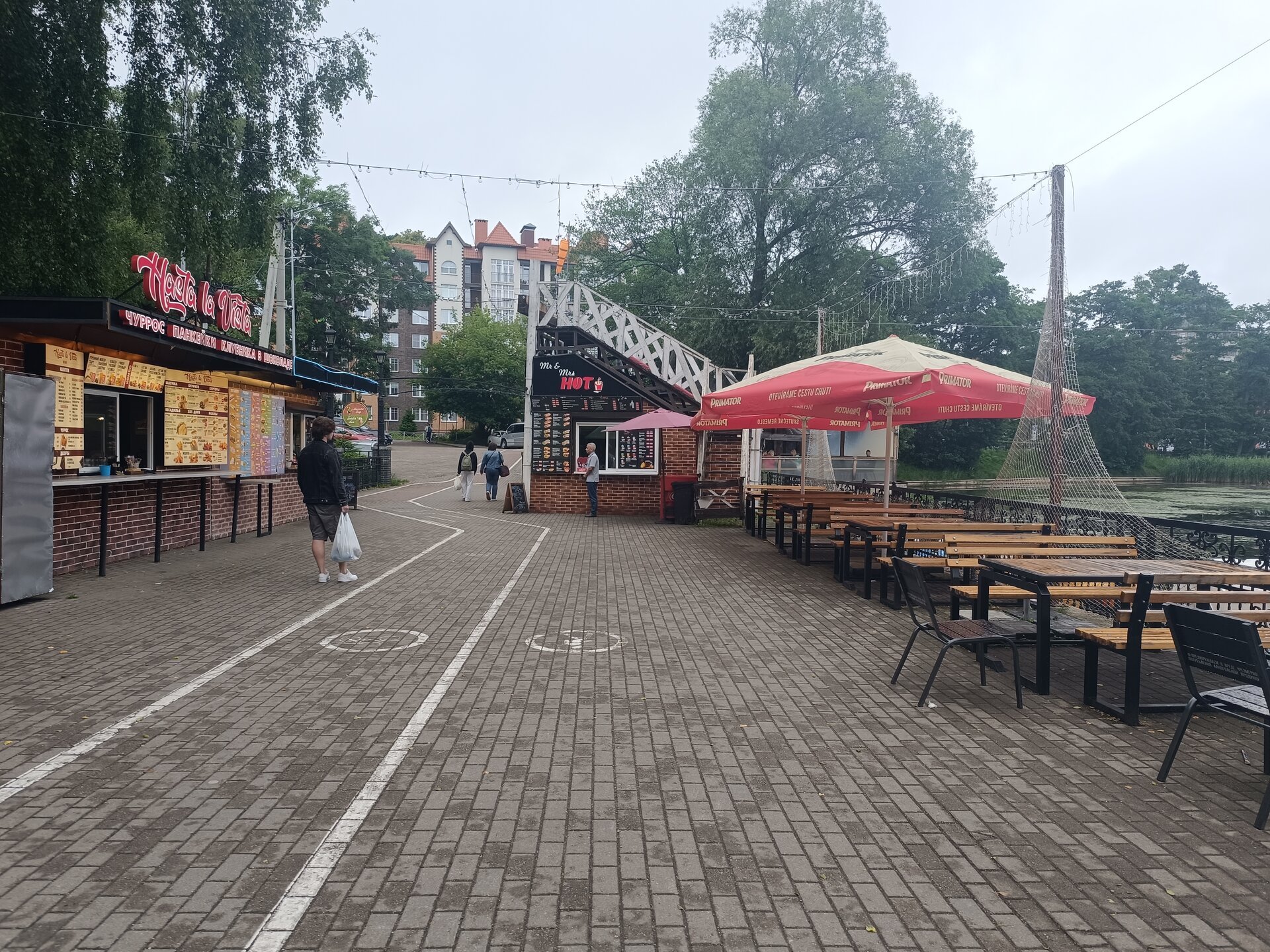И вот здесь по правой набережной Преголи можно разгуляться.🤗 Повернул сначала направо, чтобы дойти до кофейни.🚶