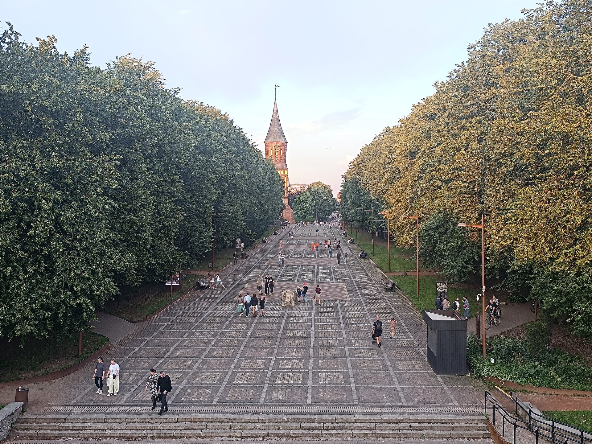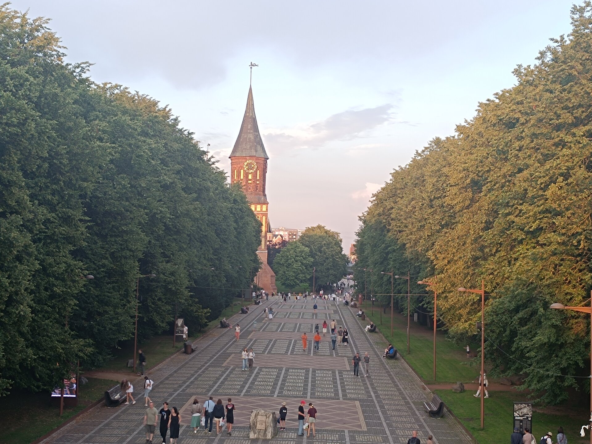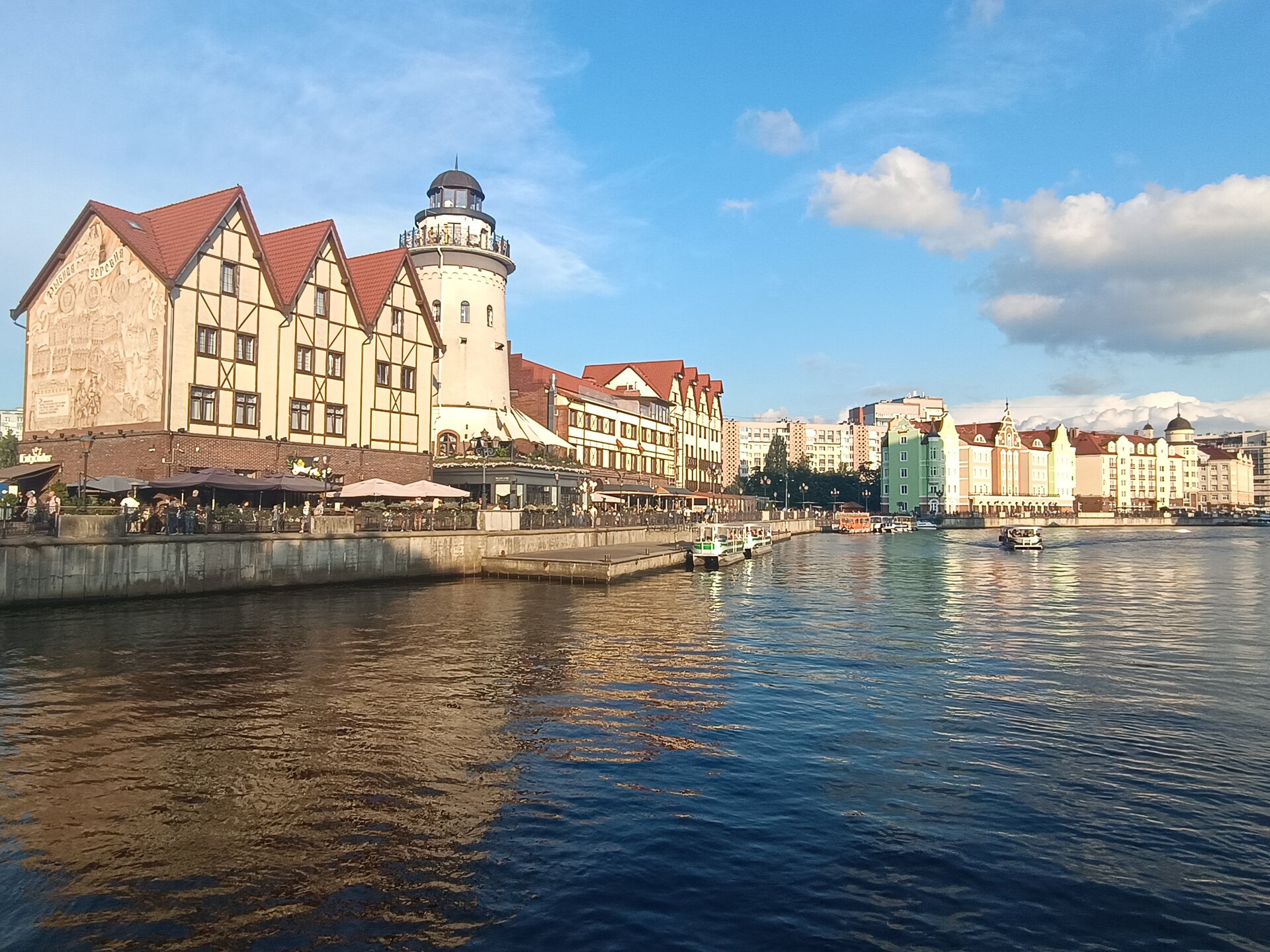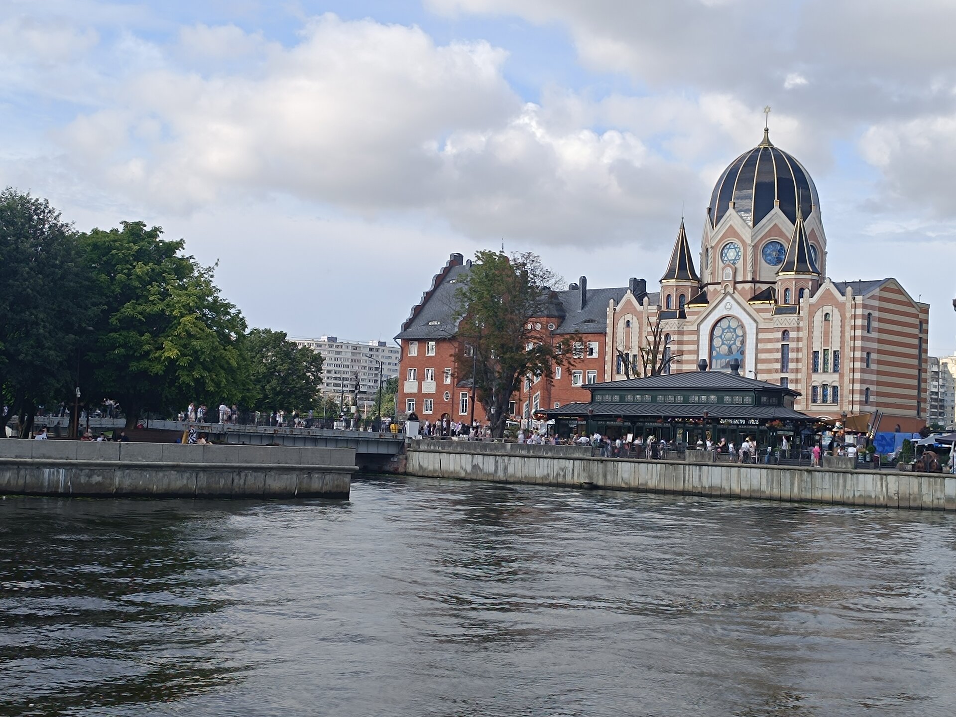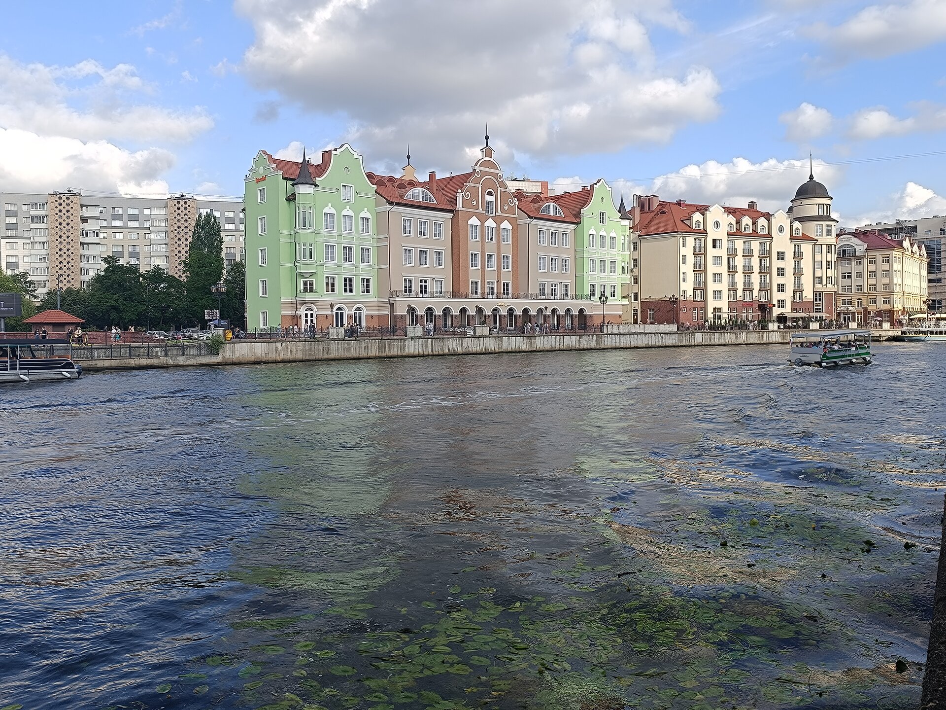 И вот здесь по правой набережной Преголи можно разгуляться.🤗 Повернул сначала направо, чтобы дойти до кофейни.🚶