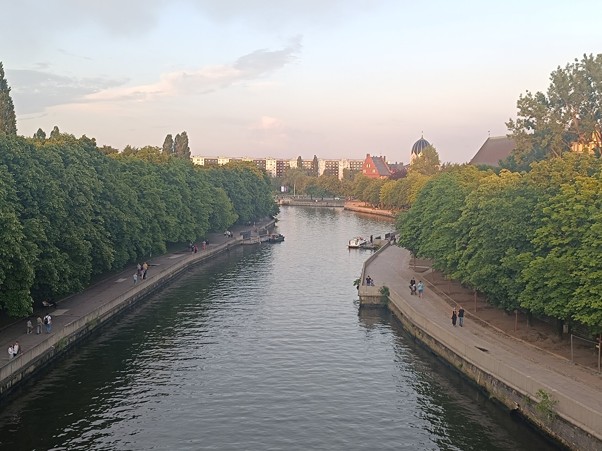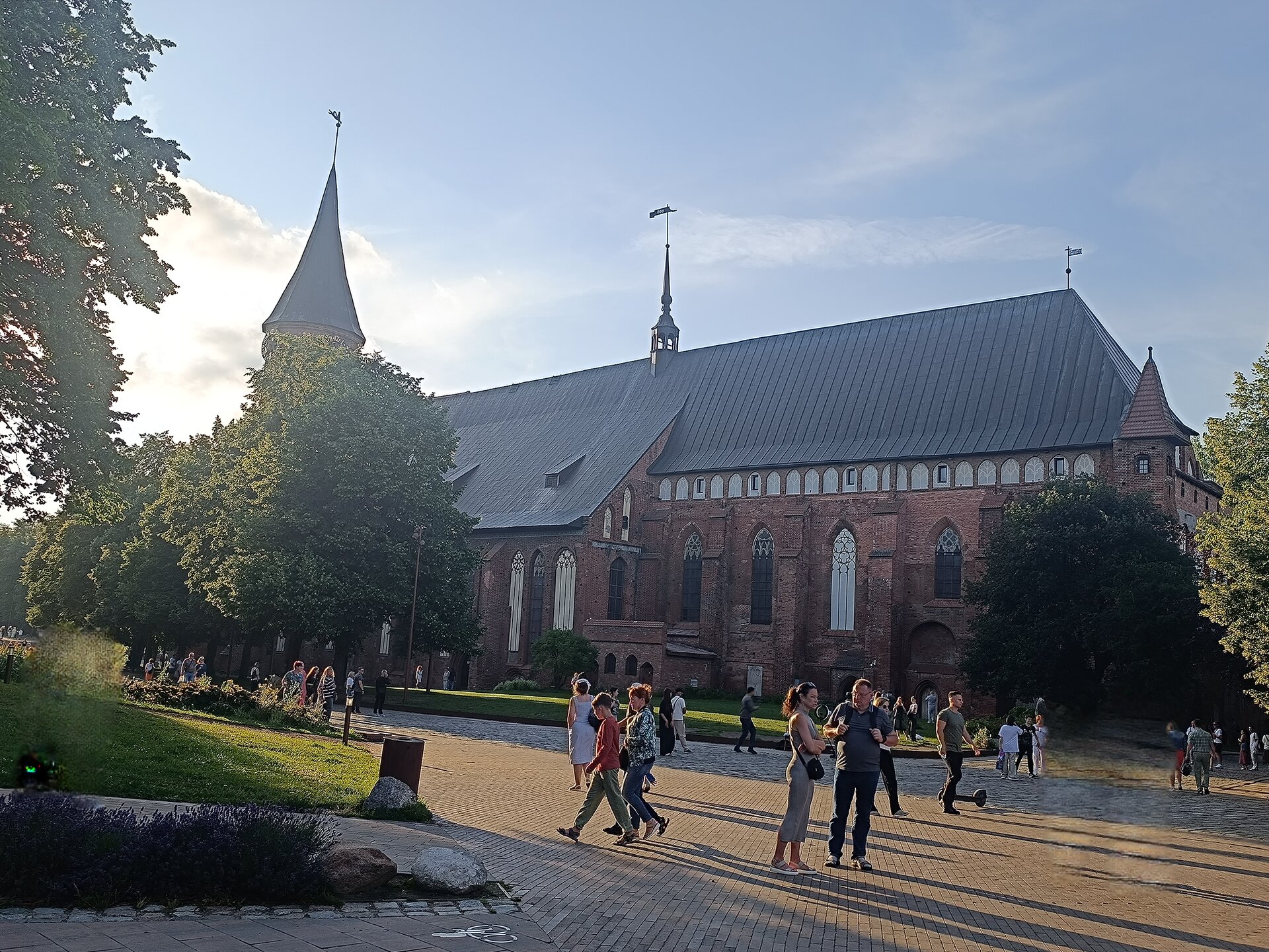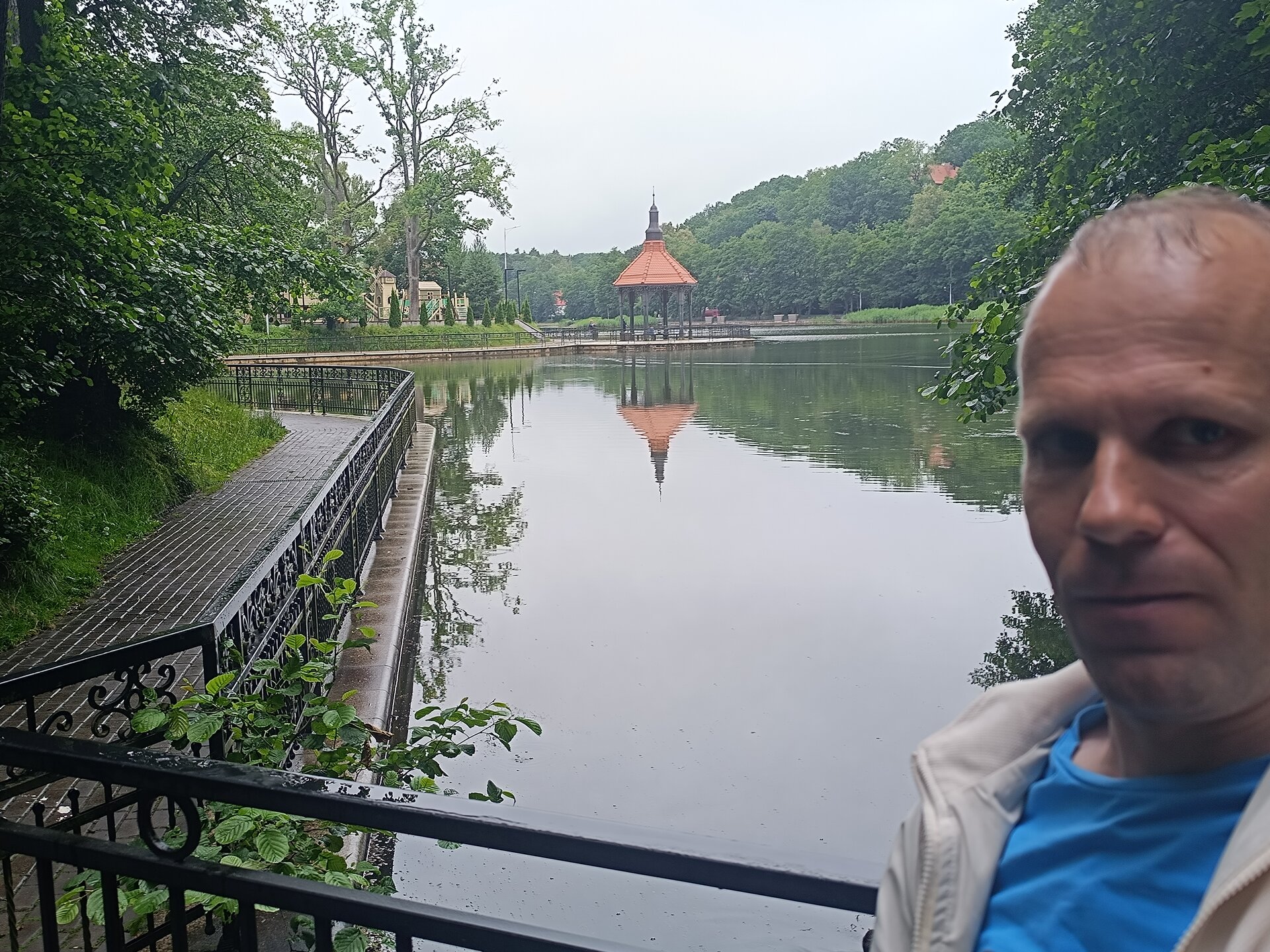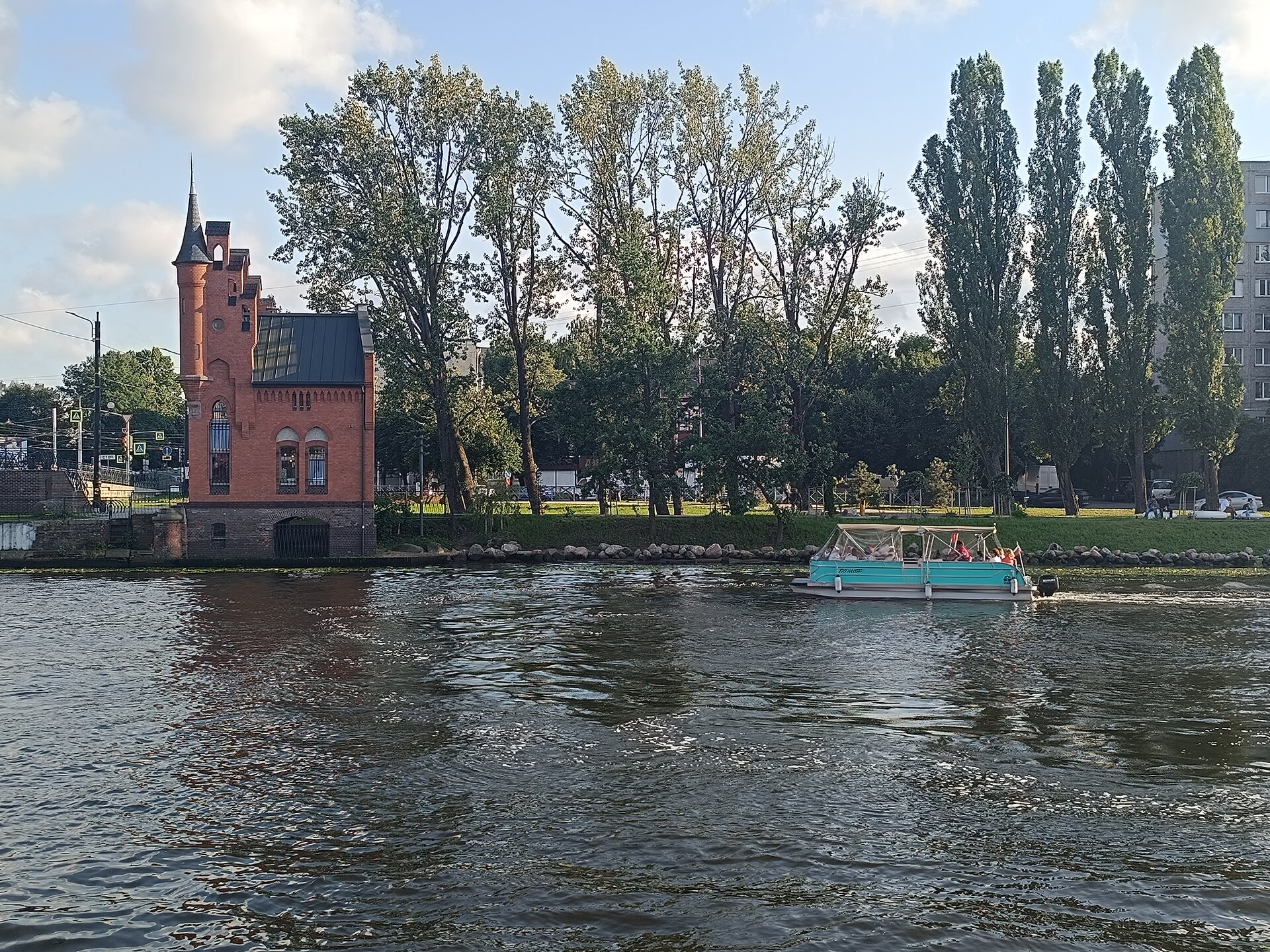 И вот здесь по правой набережной Преголи можно разгуляться.🤗 Повернул сначала направо, чтобы дойти до кофейни.🚶