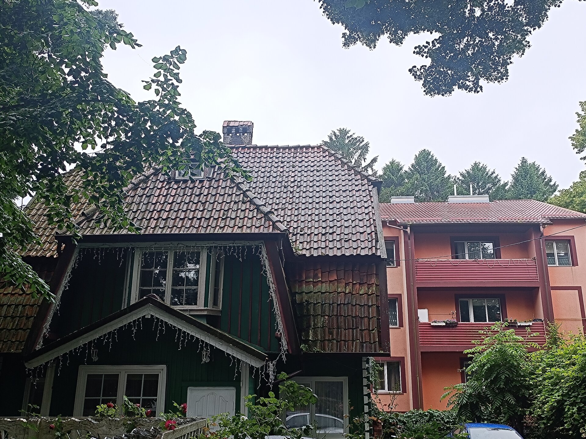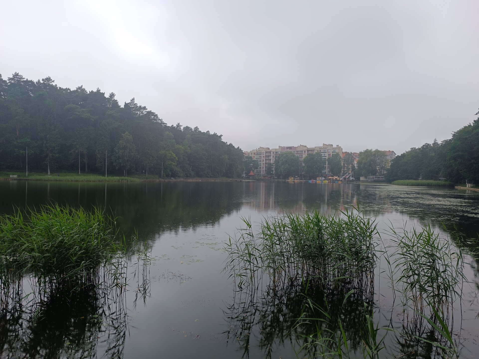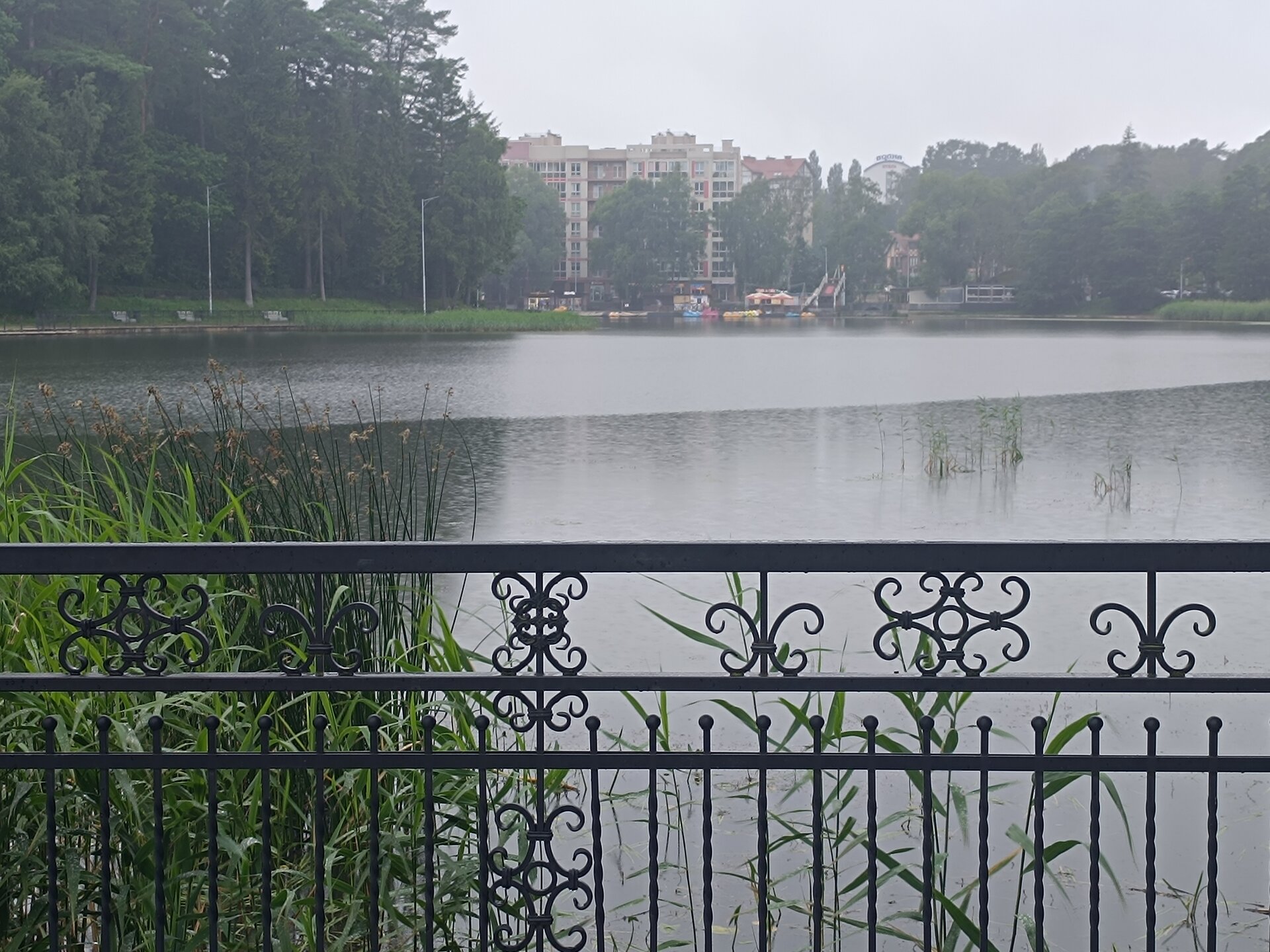 Здесь меня снова настиг ливень.🌧️ Уже пятый раз, начиная с Амалиенау, я открываю зонт.