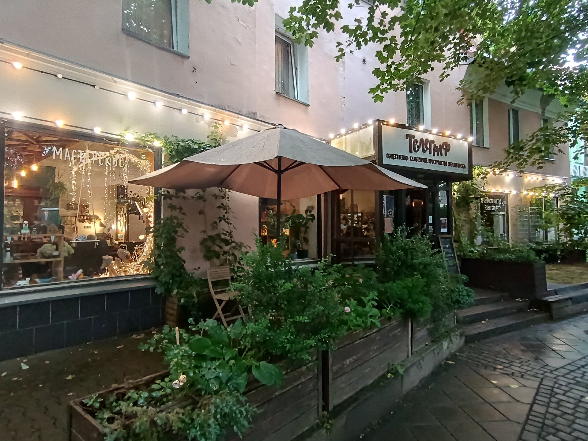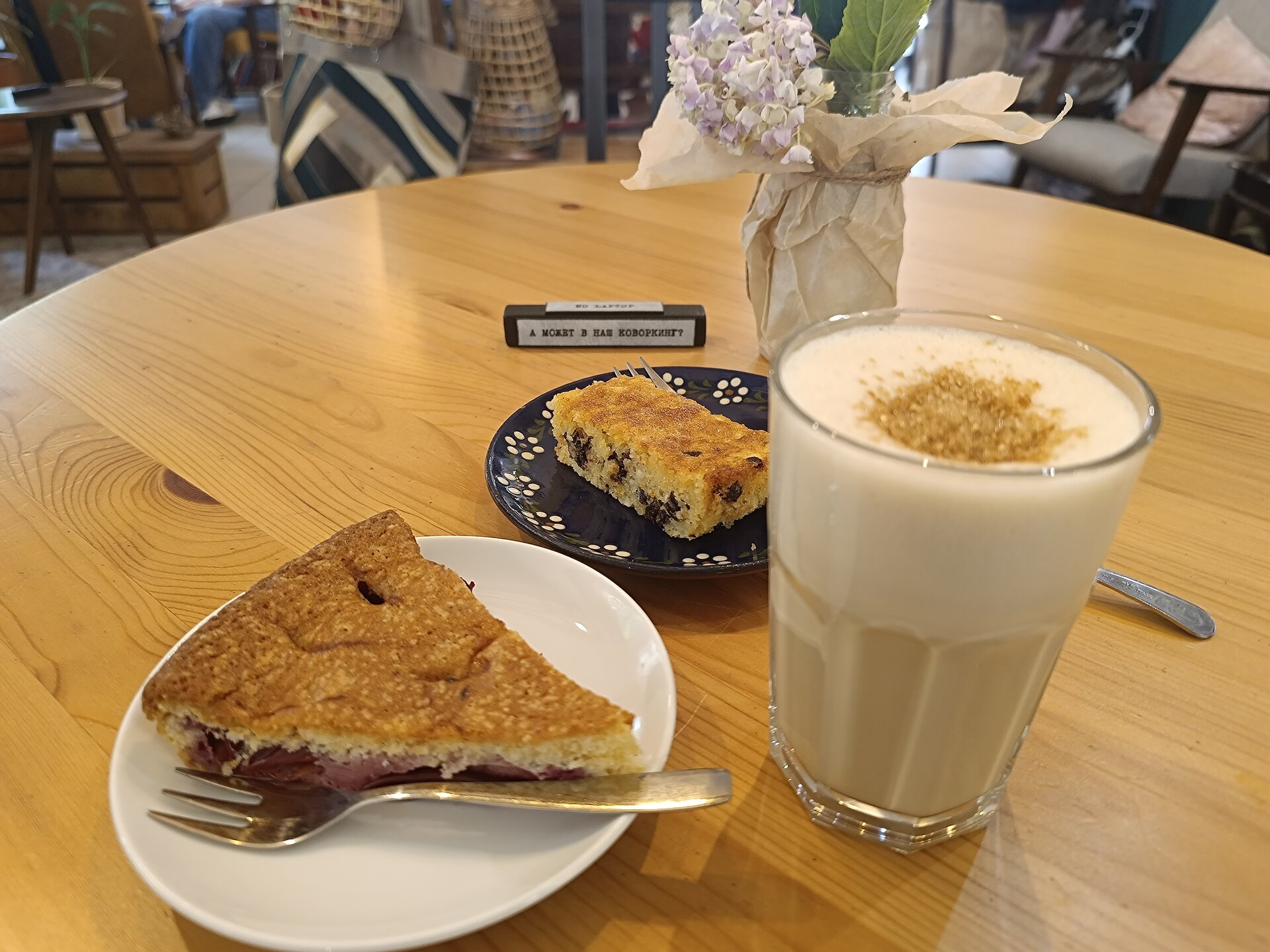 Поэтому приготовить вкусный кофе они не могли.🤷 Вариант - взять кофе с собой (а разновидностей качественного кофе там немало) или выбрать что-то из холодных напитков или десертов и разместиться на террасе.