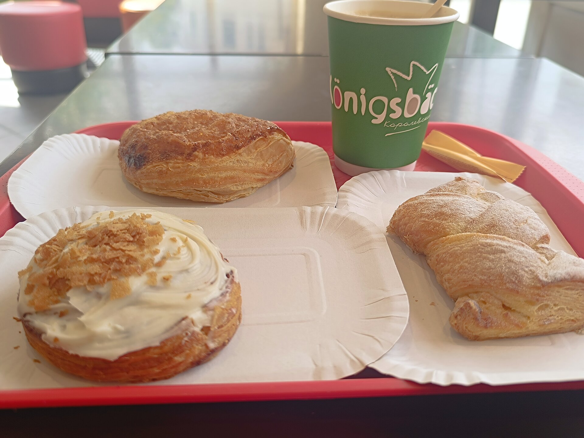 Завтракал я уже в Зеленоградске в сети кондитерских "Konigsbacker".🍽️ Не хотелось платить за "шведский стол" в 'Берлине" 900 рублей.👆