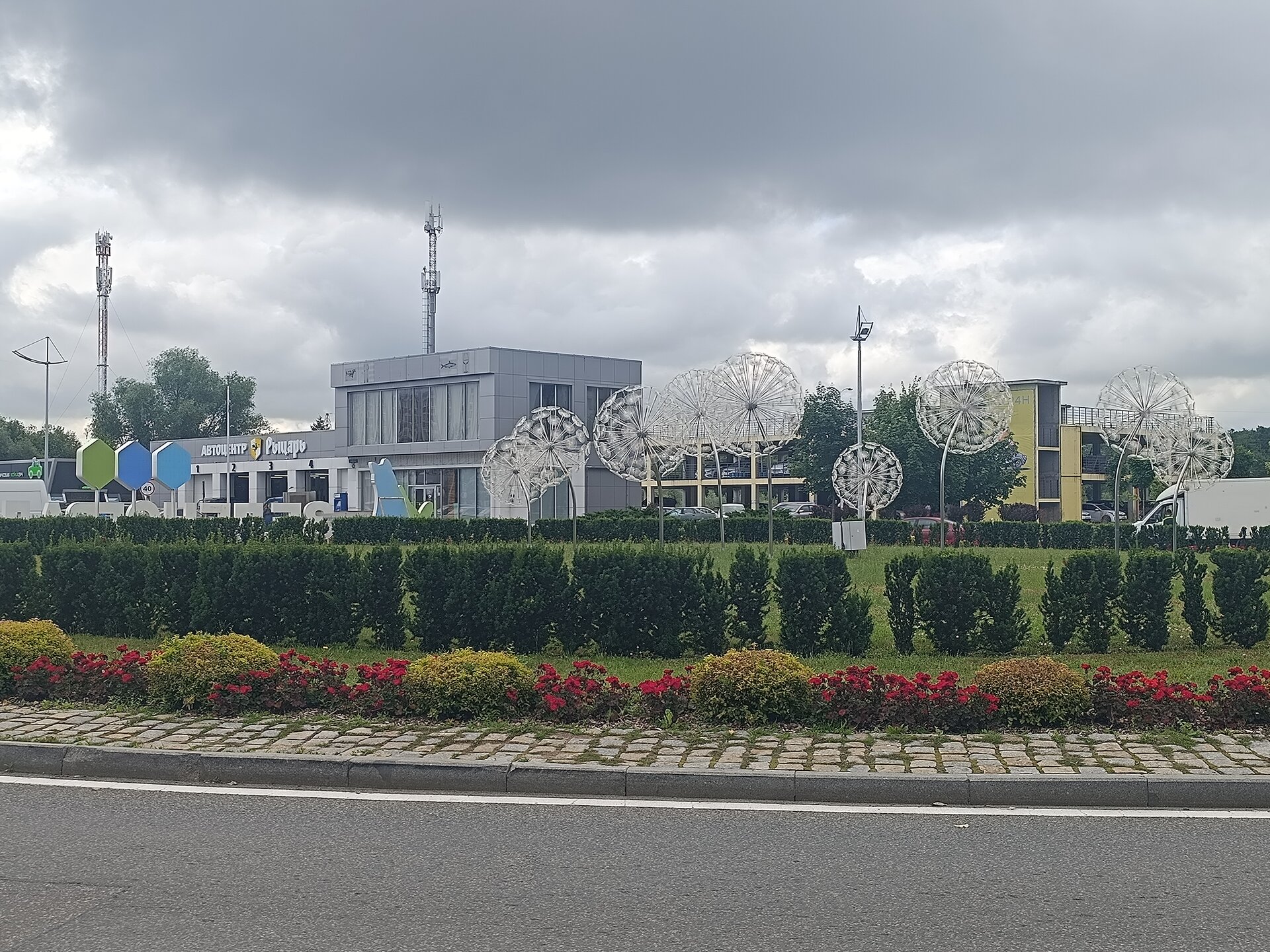 Я почти дошёл до стелы, но рассмотреть не получилось. Она была скрыта от обзора за кольцевым движением. Рядом был пешеходный переход, но по каким-то причинам на этом месте красовалось ограждение. Возможно, так решили ликвидировать аварийный участок с ДТП.🤷