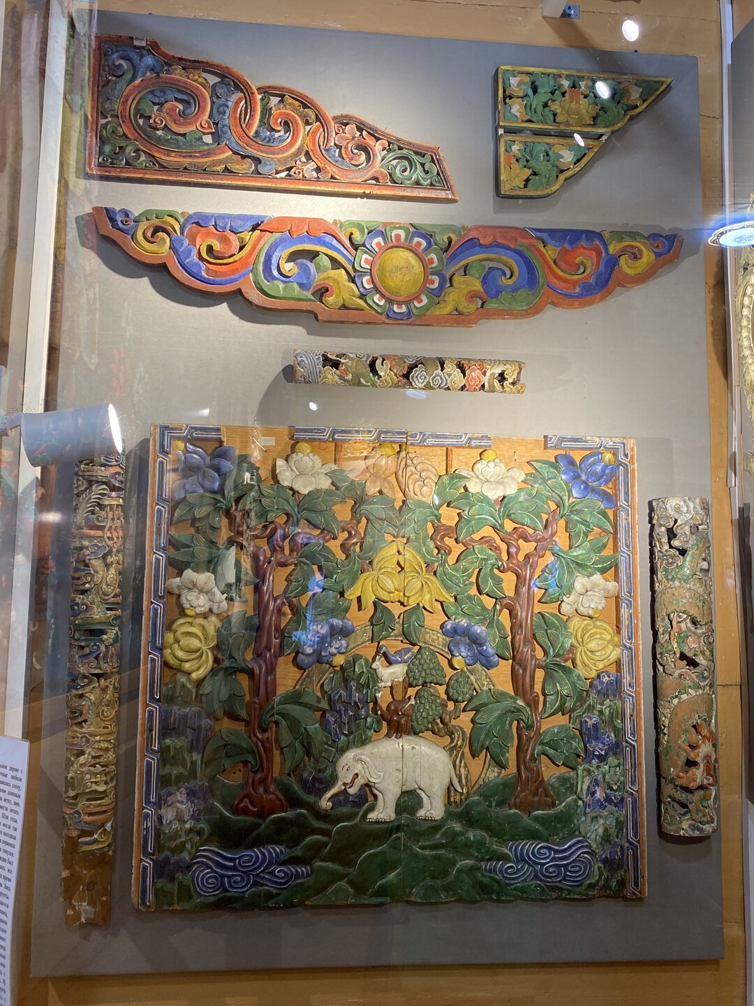 Опубликовано 3 часа назад3 ч. Автор comment_943563 Идем дальше. Камни с молитвами (мани).В экспозицию Бурятского забайкальского комплекса входит войлочная юрта, зимний дом, амбары, хозяйственный навес. Также здесь представлено культовое здание – дуган «деважин» из Тамчинского дацана, в настоящее время оборудованный в качестве выставочного зала.Традиционным для России является тибетский буддизм школы Гелуг, к которой принадлежит большинство буддистов России. Республика Бурятия является центром буддизма в России. Дуган «Деважин» был построен в 1890 г. для размещения в нем модели «рая Сукхавати» и первоначально располагался на территории Тамчинского дацана (Селенгинский район). В 1973 году его перевезли в этнографический музей народов Забайкалья. Этот необыкновенный храм отличается экзотическим внешним видом и немного похож на тайскую пагоду, а в окраске преобладает приглушенный желтый цвет (любимый оттенок течения ламаизма). Дэважин-дуган посвящён Западному Раю – согласно буддийским традициям, обидели блаженства. Это чистая Земля, где обитает Будда Амитабхи на своём троне из лотосов. Считается, что человеческое сознание при определённых условиях может быть перенесено в это умиротворенное место.Внутри дугана размещена выставка деревянных резных деталей Янгажинского (Оронгойского) дацана, среди которых особый интерес представляет панно «Туншэ», выполненное в технике плоскорельефной резьбы, иллюстрирует индийскую сказку о четырех животных, разумно решивших спор о том, как достать плоды с высокого дерева. Жалоба