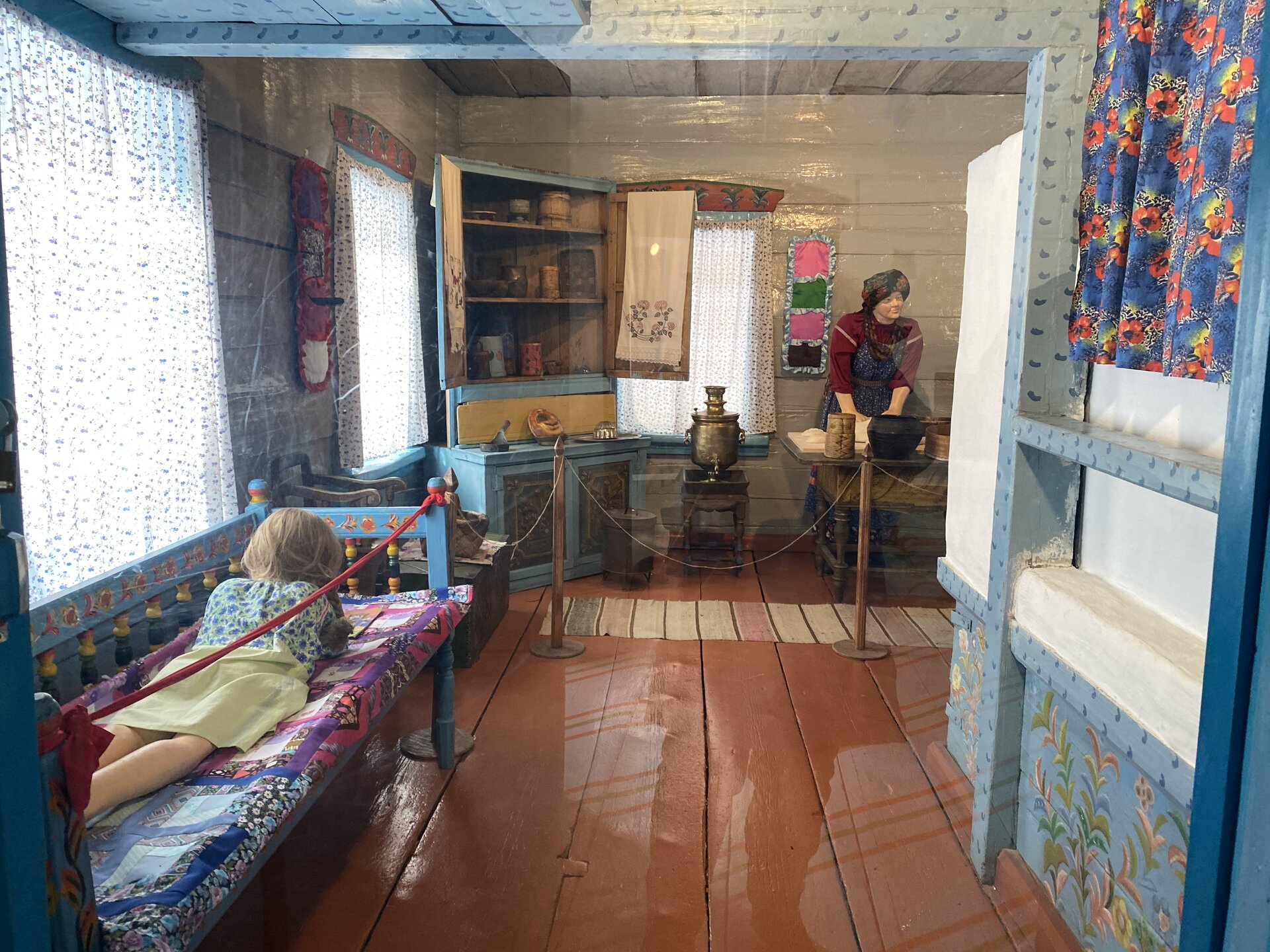 Опубликовано 3 часа назад3 ч. Автор comment_943572 Возле дома Борисова находятся самое узнаваемое строение Этнографического музея – уникальные въездные ворота, вывезенные в 1978 году из с. Новая Брянь. Они были построены в 1906 году пришлыми и местными мастерами по заказу Афанасия Савельевича Родионова. На них указан год рождения его дочери Анны. Ворота и прилегающий забор богато украшены рельефной и пропильной резьбой, расцвеченной красно-розовой, синей и желтой масляными красками. Полотнища въездных ворот и забора, подкрышные проемы покрыты сплошным накладным ковром пропильной резьбы с ромбическими, четырехугольными и круглыми центральными розетками. Каждый из мастеров вносил в резное украшение что-то из своей культуры: буряты символы буддизма – четырехконечную ваджру, цветок лотоса, семейские – ромбы, квадраты, как символ крестьянского поля. Здесь же можно увидеть влияние язычества – ножницы, которые по приданию закапывали под порог так, чтобы острые концы смотрели на входящего, тем самым оберегая дом от дурного сглаза. Устройство и украшение ворот были показателем благополучия и исправности хозяев. Чем массивнее и красивее были ворота – тем благополучнее был и сам хозяин. Интерьер Дом Борисова традиционен, но здесь можно увидеть мебель городского типа, дорогую фарфоровую и фаянсовую посуду, часы и большие сундуки, окованные жестью, с музыкальными замками. Одна из характерных особенностей интерьера семейских – домовая роспись, которую можно разделить на наружную и внутреннюю. Роспись интерьеров была женским занятием. Многие вещи в доме были украшены руками хозяев: сундуки, прялки, посуда, наличники и многое другое. Хозяйка, умевшая украсить свой дом росписью, пользовалась большим уважением у семейских. Жалоба