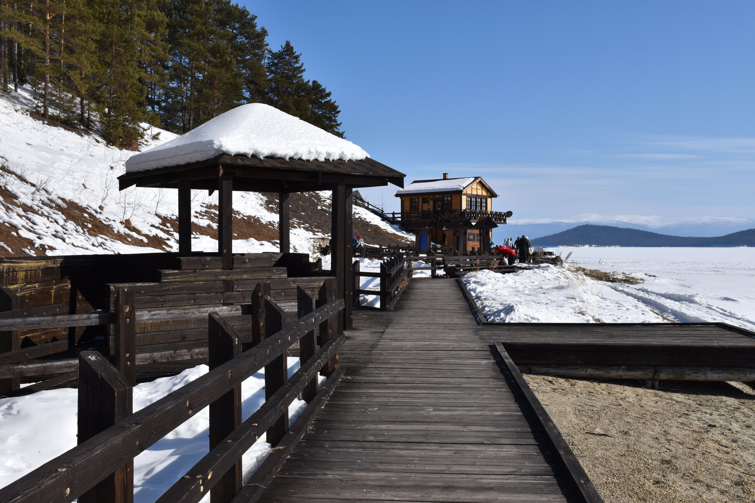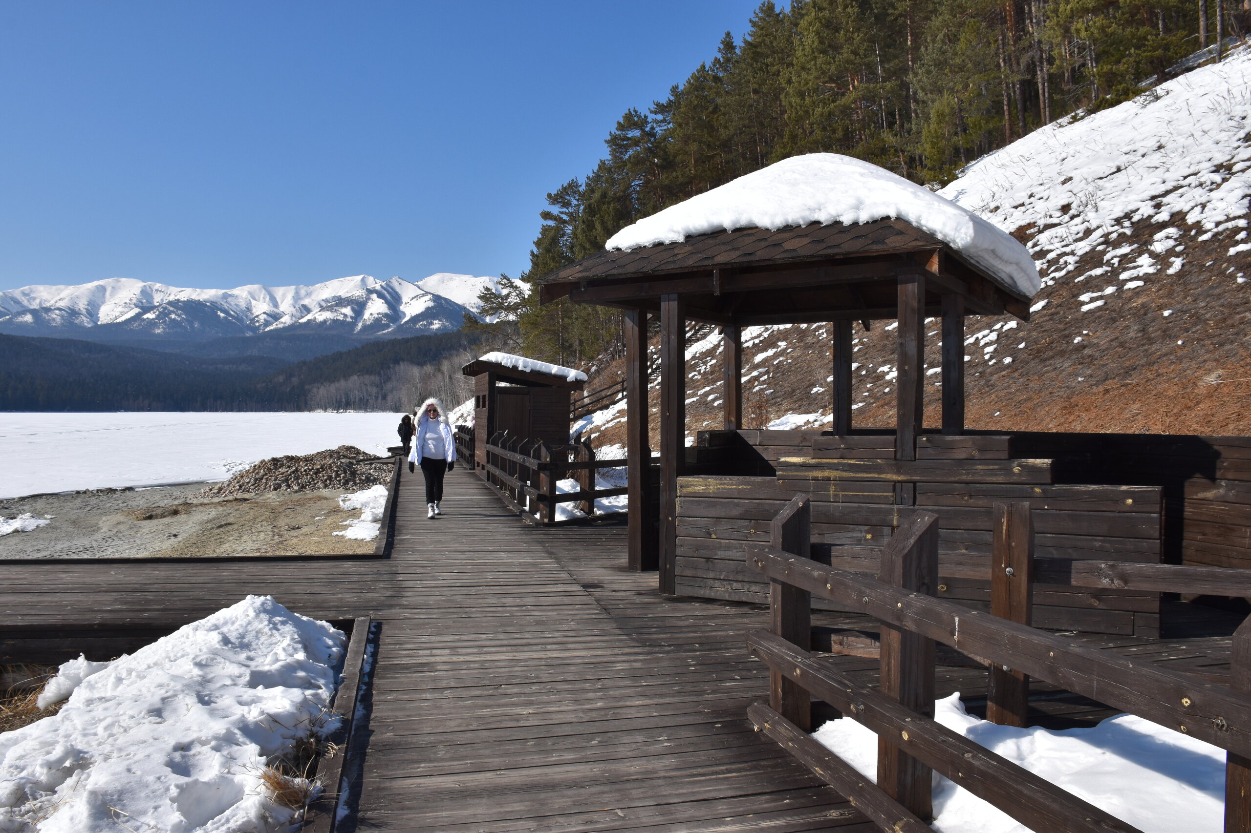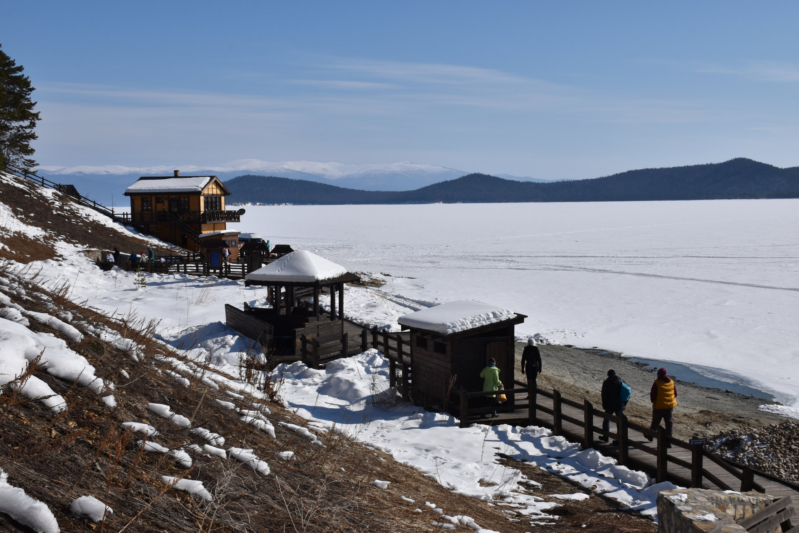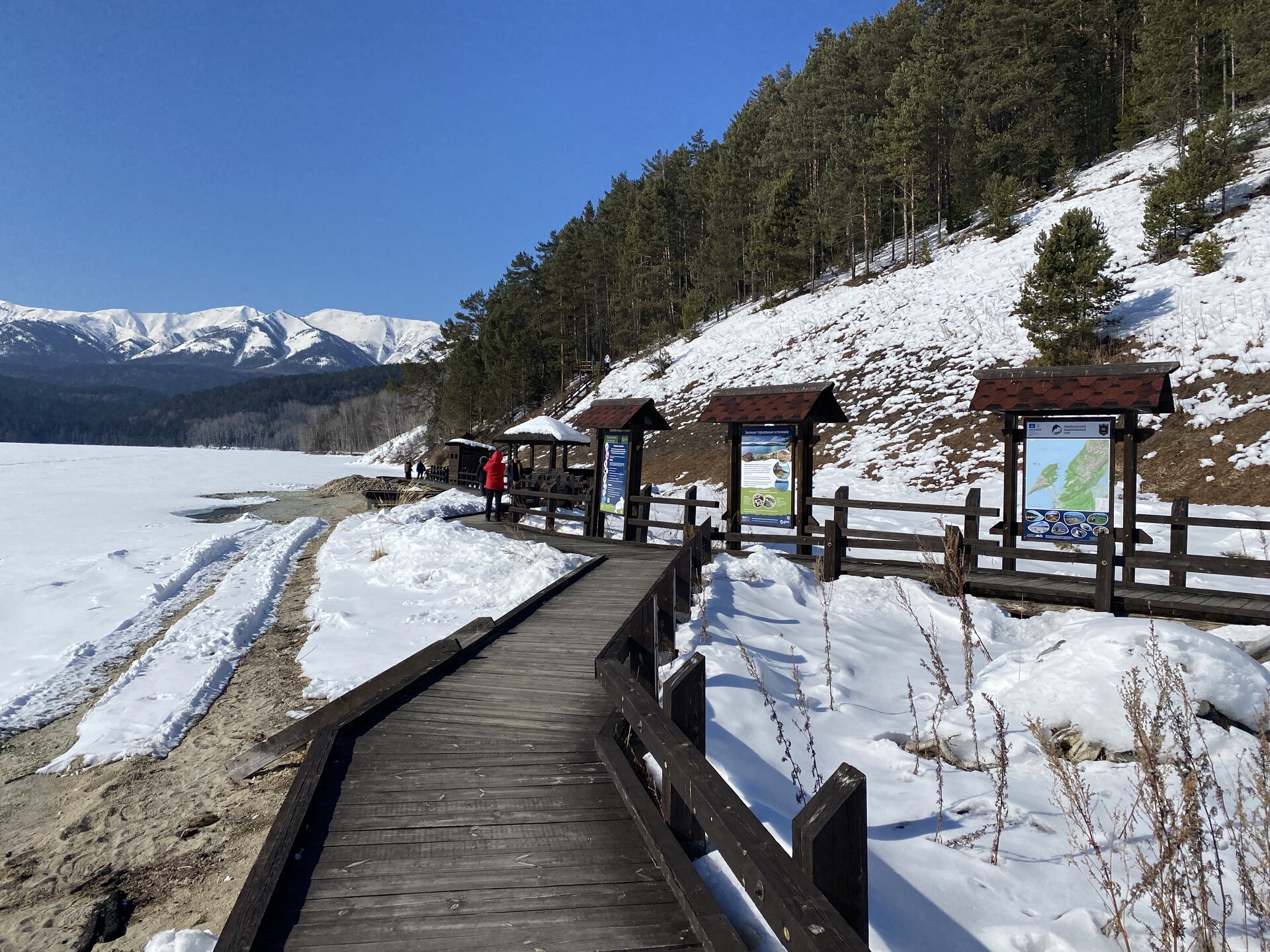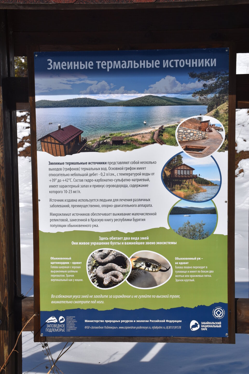 Опубликовано 11 февраля11 февр Автор comment_943642 Бухта ЗмеинаяБухта Змеиная находится в обрамлении тайги и гор с белоснежными вершинами. В течение тысяч лет здесь водились ужи. Отсюда и название бухты. Сейчас ужи относятся к реликтовому виду. Кроме безобидных ужей на побережье обитает ядовитый щитомордник. Поскольку пресмыкающиеся осторожны, змей вы можете и не встретить, а вот сухую сброшенную змеиную кожу вероятность увидеть довольно высока.Разумеется, не змеи привлекают туристов в бухту. Её главной достопримечательностью являются термальные источники. На берегу залива бьет гидрокарбонатно-сульфатно-натриевый источник температурой +38,5…+45,5 °С – один из самых горячих на Байкале. По составу воды он похож на знаменитые пятигорские источники. В минеральной воде много сероводорода, натрия, фтора, поэтому ее не пьют, а используют для купания. Целебные ванны в деревянных купелях-срубах помогают при радикулите и болезнях опорно-двигательного аппарата.Местные легенды утверждают, что, искупавшись здесь десять раз, можно излечиться от всех болезней. На главном источнике есть деревянная купель.Для удобства туристов, желающих исцеления, местные власти обустроили скромную зону отдыха. Она включает в себя два деревянных короба-купальни для одновременного размещения не более четырех человек. Также неподалеку имеется раздевалка, небольшая беседка, дощатая дорожка с помостом и перилами, пристань для некрупных судов. Следует учитывать, что вода в деревянных ваннах не стоячая, а проточная, ведь источники струятся из-под земли.Вначале не стоит превышать время нахождения в купели – специалисты рекомендуют нежиться в воде не более 10 минут.Первоначально я планировала окунуться в такие ванные, но второй день чувствовала первые признаки простуды (видимо подцепила вирус в поезде, где многие кашляли), начала пить противовирусные таблетки и не рискнула серьезно разболеться. Раздевалки здесь на улице, неотапливаемые, несмотря на солнце, на улице минусовая температура (около -3-5). Моя соседка жаловалась, что ей было не комфортно раздеваться/одеваться, холодно. В ваннах вода горячая, сидеть не холодно. Следующие дни я чувствовала себя хорошо, вовремя приняла меры, но все равно решила отказаться от таких водных мероприятий в холодных раздевалках. Мне еще предстояло выходить на работу, в офис (впервые за 5 лет удаленки).У меня есть опыт купания в теплой воде в открытом бассейне в холодное время года (термы в Адыгее, бассейны в Сочи и Казани), но там всегда были теплые раздевалки. Ты переодеваешься в комфортных условиях, и сразу же ныряешь в горячую воду. От разниц температур испытываешь кайф! И я ни разу не простывала. Здесь же моя рациональность была против таких терм.Хотя остальная часть нашей группы были в восторге от терм Бурятии, никто не заболел (правда они потом пили коньяк). А вот моя соседка из 3 таких мероприятий сходила на 2, а потом отказалась Бухта ЗмеинаяБухта Змеиная находится в обрамлении тайги и гор с белоснежными вершинами. В течение тысяч лет здесь водились ужи. Отсюда и название бухты. Сейчас ужи относятся к реликтовому виду. Кроме безобидных ужей на побережье обитает ядовитый щитомордник. Поскольку пресмыкающиеся осторожны, змей вы можете и не встретить, а вот сухую сброшенную змеиную кожу вероятность увидеть довольно высока. Разумеетс