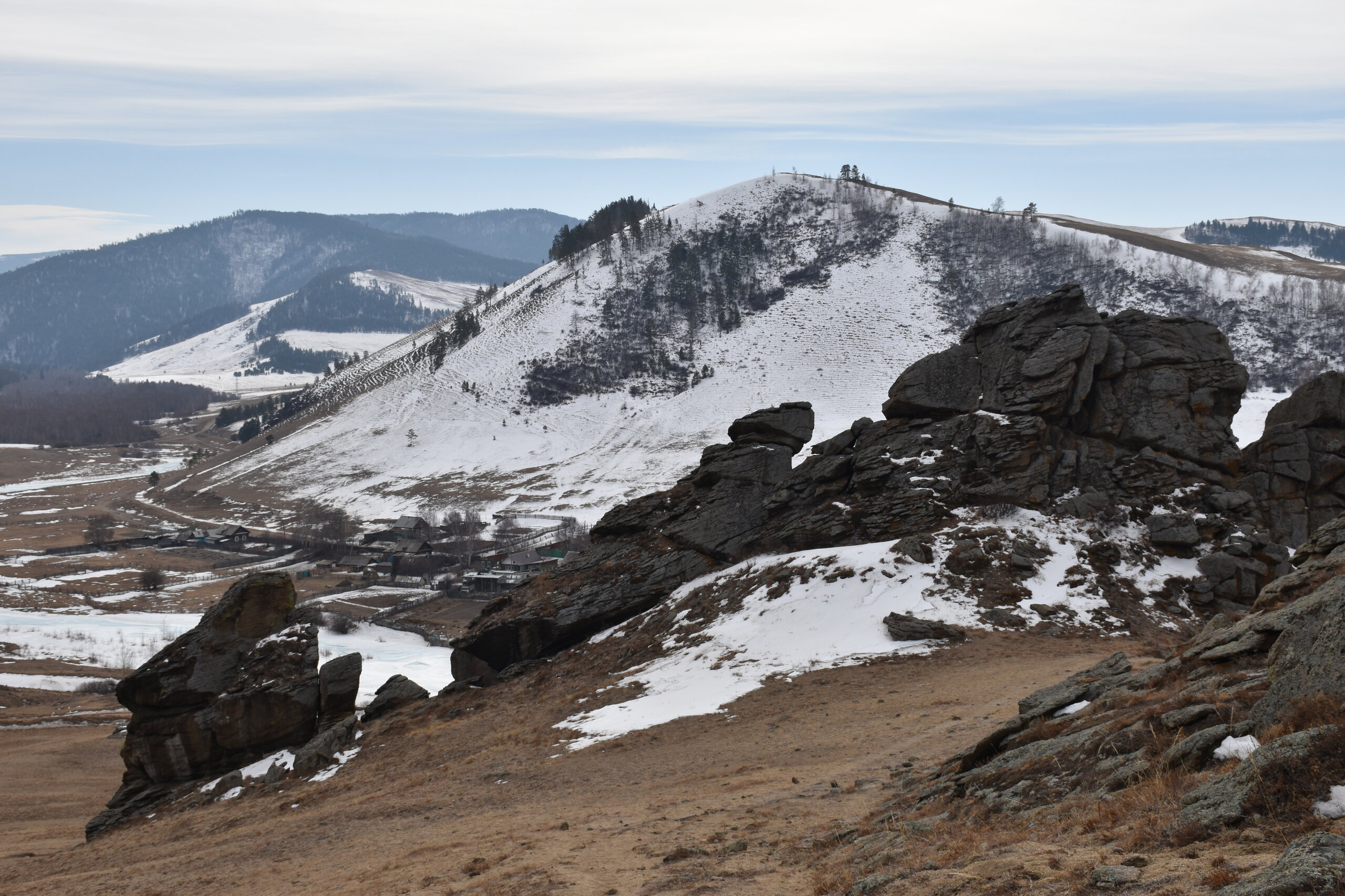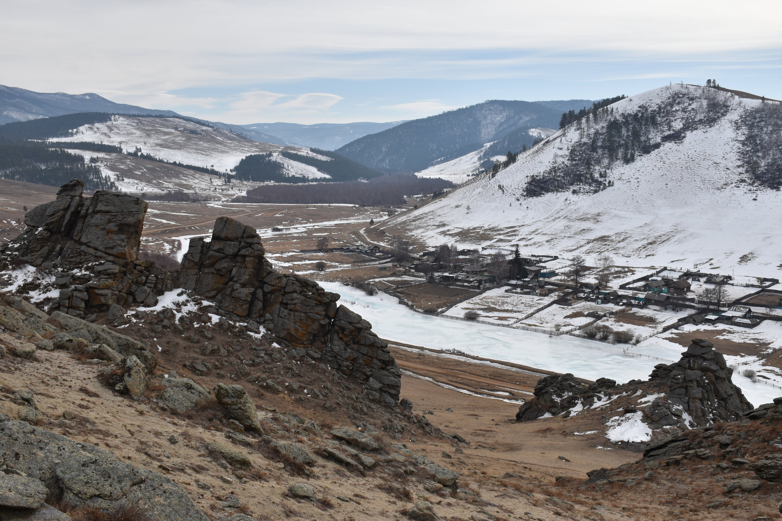 Опубликовано 12 февраля12 февр Автор comment_943657 День 10. 18.03.2025Сегодня у нас длинный и очень насыщенный день! Выезжаем пораньше, чтобы все успеть. Маршрут: дворец богини Янжима, Камень-бык и Сувинская Саксония. Активная часть тура: 5,5 км, продолжительность маршрута 7-8 часов. Весь день мы провели в Баргузинской долине. Места очень живописные! Даже зимой они прекрасны, а летом – еще лучше! На прошлой неделе (в пятницу 06.02.2026) посмотрела на канале «Точка.РФ» программу «Места надо знать», где показали Баргузинскую долину, все наши места посещения, еще и другие достопримечательности долины! Снимали летом! Как же красиво здесь в яркой зелени!!! Советую посмотреть.Баргузинская долина — природный комплекс, который поражает своей красотой и аутентичностью: живописные пейзажи, уникальный животный и растительный мир, отсутствие явных следов цивилизации делают район очень популярным среди туристов из России и со всего мира. На территории долины располагается Джергинский заповедник и Улюнский заказник.Баргузинская долина была заселена ещё в эпоху неолита (IV тысячелетие до н. э.). О её древней истории свидетельствуют многочисленные археологические памятники, в том числе остатки древних погребений, обнаруженные горным инженером Иннокентием Лопатиным в 1861 году, а также наскальные рисунки эпохи бронзы возле сёл Душелан, Суво, Кладово, Гульмакта, Воронково.Название долины происходит от древнего монголоязычного племени баргутов, некогда населявшего её территорию. Баргузинская долина в Средние века была центром северной территории Монгольской империи, которая называлась Баргуджин-Токум, что в переводе с бурятского языка имеет два значения: "глухой, малоосвоенный уголок" и одновременно "край, родное место".Древняя Баргузинская долина овеяна преданиями и легендами. Издавна таёжные охотники (эвенки) и скотоводы (буряты) соблюдали неписаные законы, связанные с духами гор, лесов, рек и родников. Не ломать дерево, поскольку в нём, возможно, обитает дух умершего шамана. Не бросать мусор в реку, иначе лусуды — духи реки — могут наслать большую воду. Не стрелять в лебедей и орлов, потому что эти большие и сильные птицы — хранители многих священных мест долины. Эти традиции баргузинцы впитывали с молоком матери.По одной из легенд, тут был захоронен один из самых известных азиатских завоевателей, Чингисхан. Его могилу ищут уже не одну сотню лет.В наши дни Баргузинская долина, как и в прошлом, относительно мало заселена. По большей части она представляет собой распаханную или освоенную под выпасы скота степь. В некоторых местах сохранились участки злаково-разнотравной степи с берёзовыми и лиственнично-сосновыми лесами. Особую живописность долине придают чистейшие реки и озёра, а также отдельно возвышающиеся причудливые скалы-останцы и огромные валуны.Баргузинская долина — это котловина природного происхождения, которая расположилась между Баргузинским и Икатским хребтами. Находится на восточном берегу Байкала. Она начитается возле посёлка Усть-Баргузин и заканчивается у курорта Умхея. Дальше дорог просто не существует. В долине расположен райцентр Баргузин. С XIX века сюда по этапу отправляли ссыльных. В посёлке отбывали ссылку декабристы братья Кюхельбекеры, участники восстания на броненосце «Потёмкин», большевики.Баргузинская долина — одно из самы