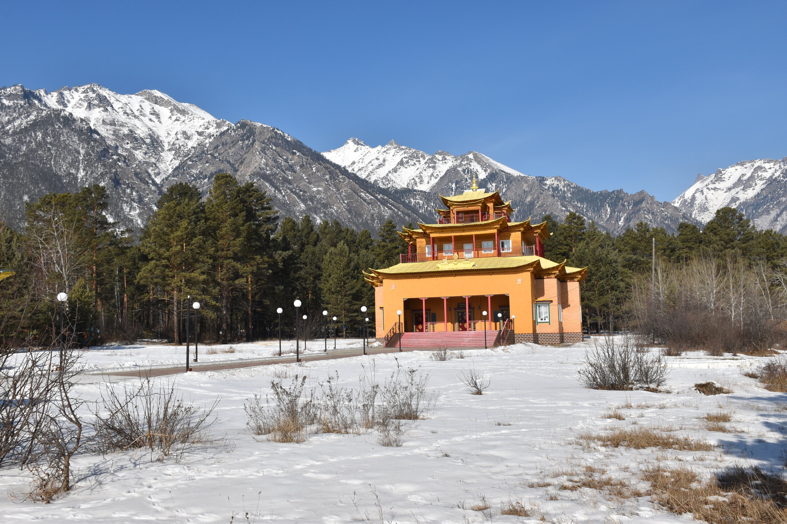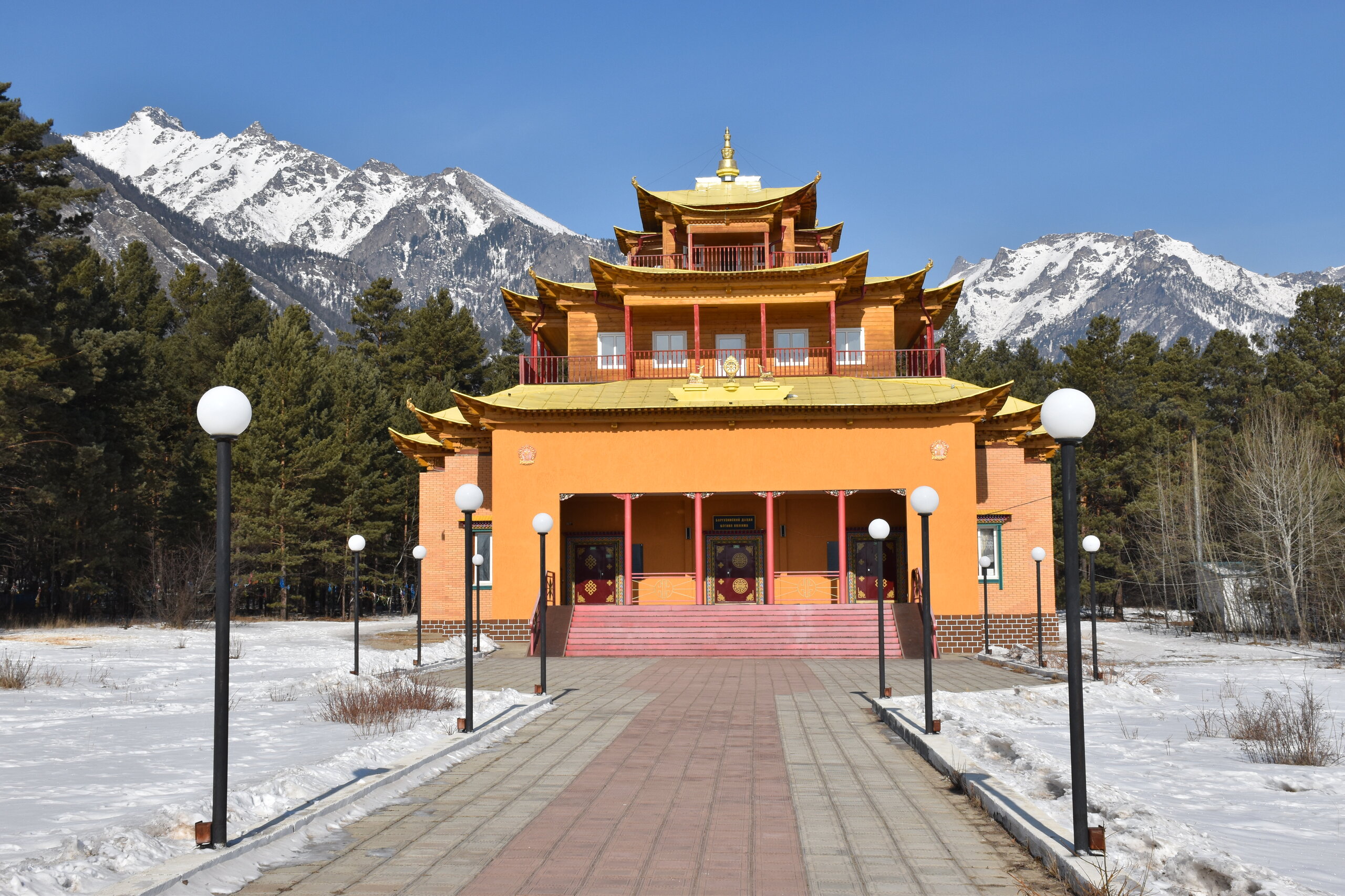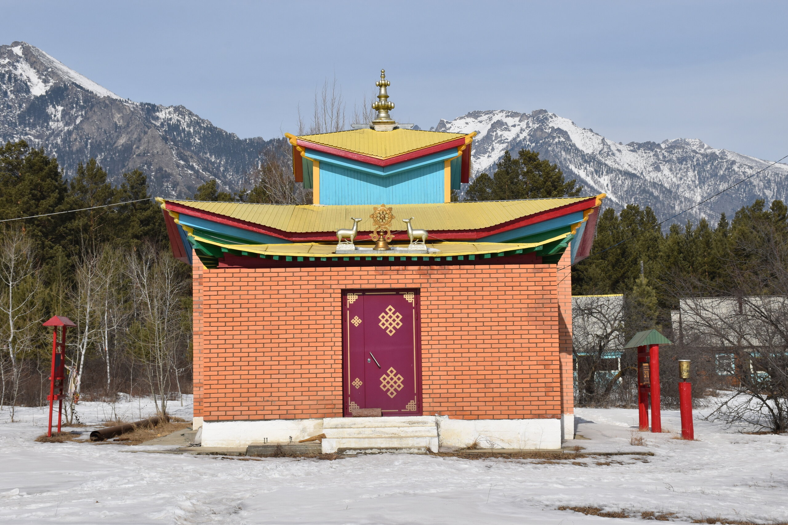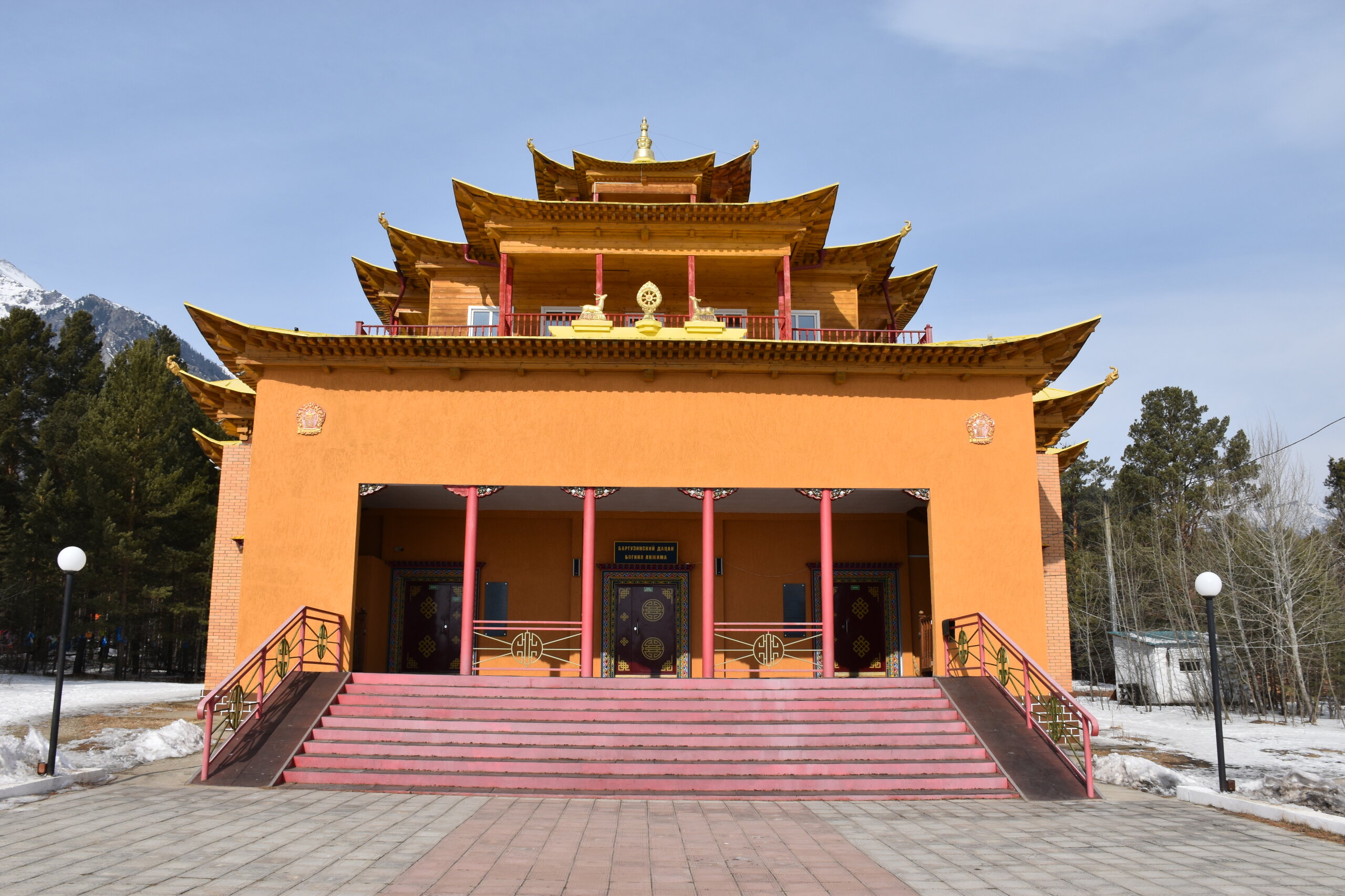 Опубликовано 12 февраля12 февр Автор comment_943662 В 2015 году неподалёку от святилища построили Цогчен-дуган Баргузинского дацана, получивший имя «Дворец богини Янжимы». Главный храм выглядит необычно: здание притягивает взгляд необычной формой крыши и сочным жёлтым оттенком. Внутреннее убранство мы осматривали самостоятельно. Жалоба