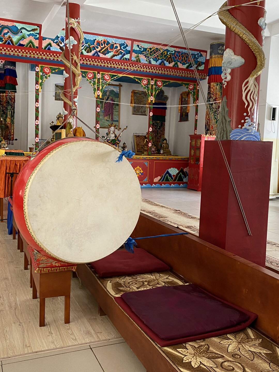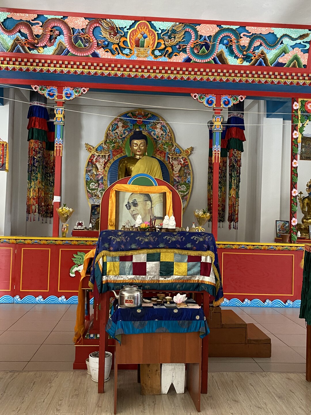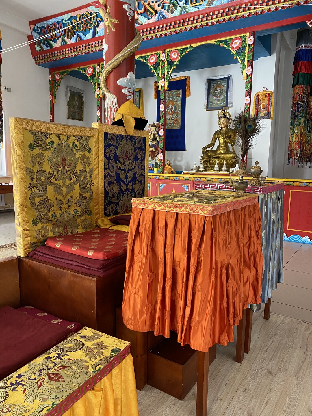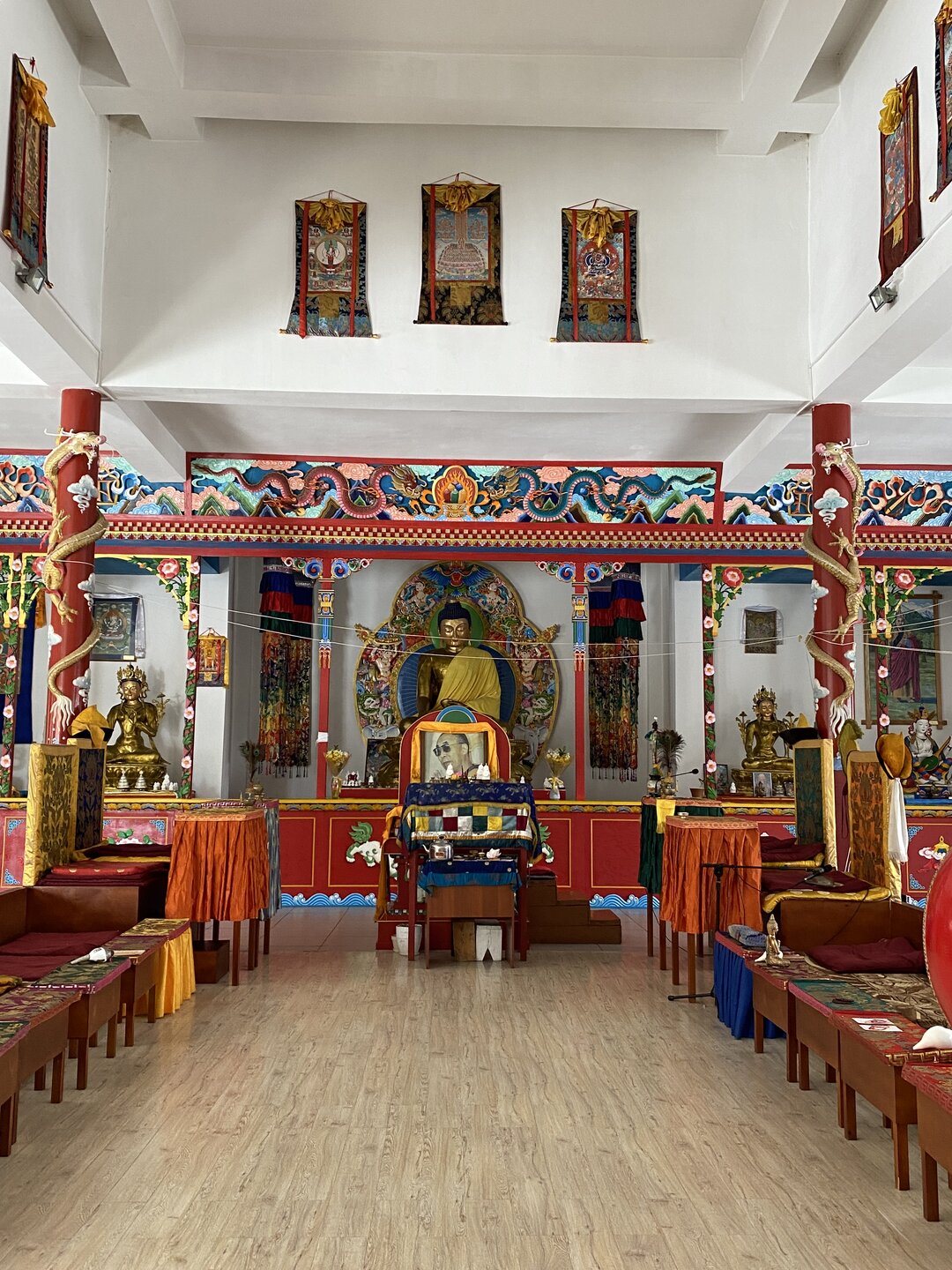 Опубликовано 12 февраля12 февр Автор comment_943662 В 2015 году неподалёку от святилища построили Цогчен-дуган Баргузинского дацана, получивший имя «Дворец богини Янжимы». Главный храм выглядит необычно: здание притягивает взгляд необычной формой крыши и сочным жёлтым оттенком. Внутреннее убранство мы осматривали самостоятельно. Жалоба