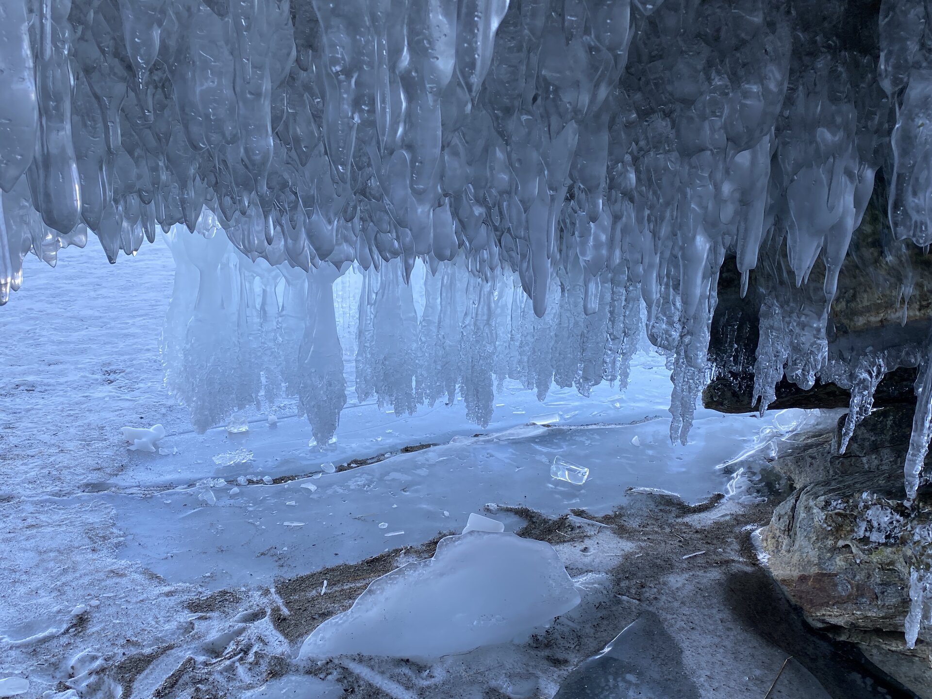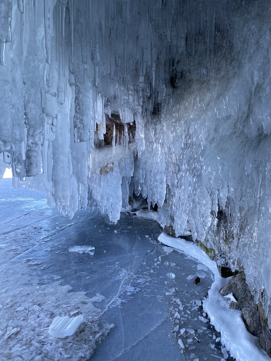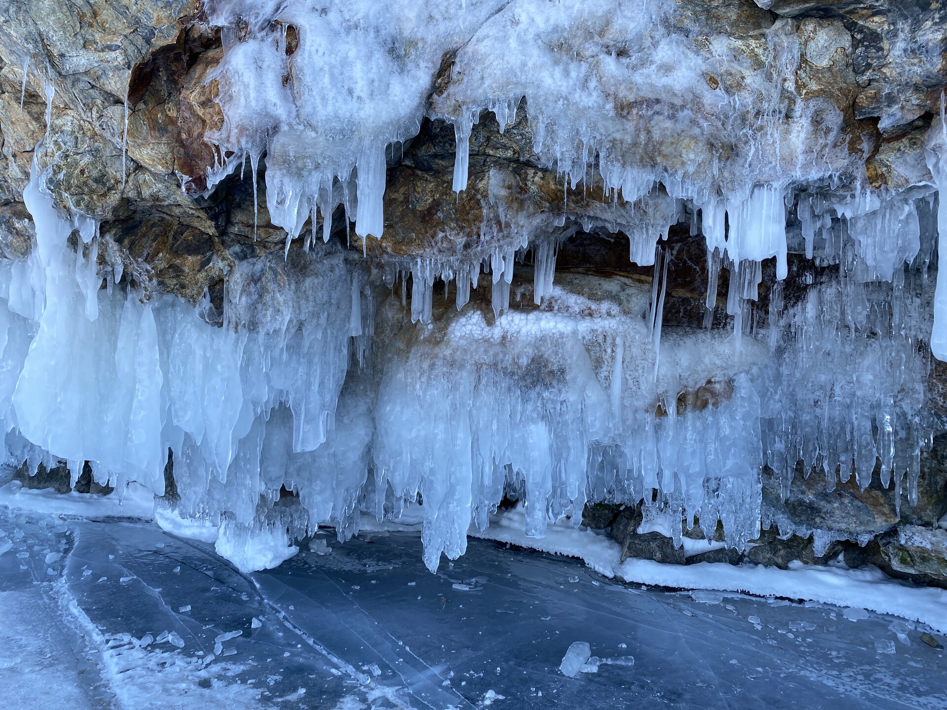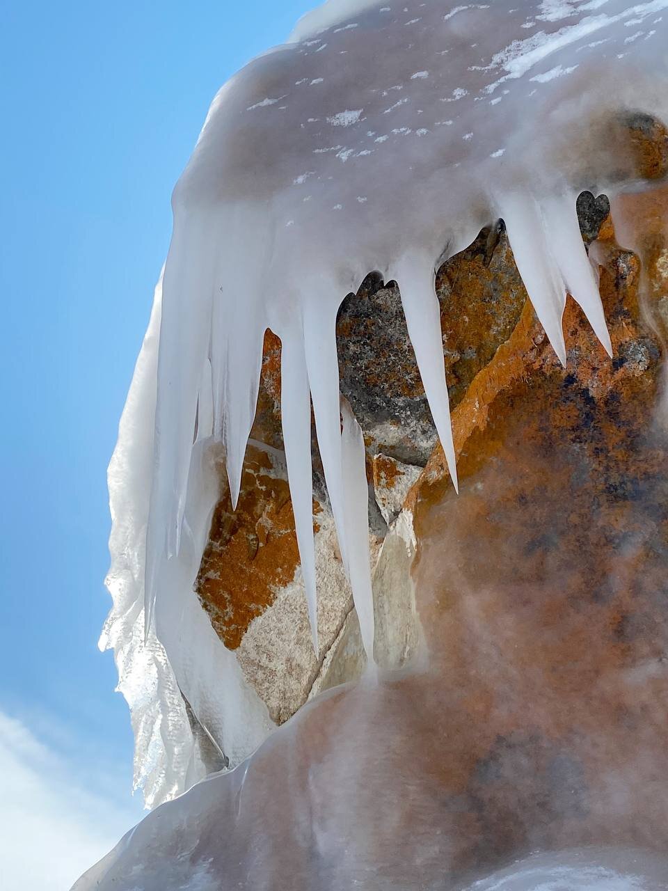 Опубликовано 11 февраля11 февр Автор comment_943633 А на следующей остановки я увидела уже знакомый Байкал! В Чивыркуйском заливе есть ледяные пещеры и гроты. В зимнее время стены пещеры обрастают мощными гирляндами ледяных сосулек. И именно здесь были самые красивые сокуи. Видимо на восточном побережье осенью были более мощные штормы, больше брызг, чем на западном побережье Байкала. Сказка! Природа – самый талантливый скульптор!!! Жалоба