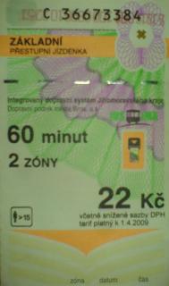Опубликовано 13 марта, 201114 г. comment_100336 Проинструктируйте, пожалуйста, насчёт правил пользования общественным транспортом в Брно и Праге... Если позволите, в качестве попытки ответить приведу частный пример... В последней моей поездке в июне 2010-го (тур 9Ф+) была остановка на ночёвку в Брно. Тогда-то и состоялась наша с Экспертом+ ТТ поездка на трамвае с окраины, где находился наш отель (VISTA HOTEL, HUDCOVA 72, 62100 BRNO) в сторону центра Брно. Город разбит на транспортные зоны, нам потребовались билеты для проезда через две. Вот как выглядел такой билет на трамвай в Брно образца июня 2010-го года (сорри за качество, сканера нет...): (крестик в верхнем углу и красные перевёрнутые цифры - след от компостера) Купить билеты можно у водителя (наверняка и в киосках на улице), но мы их приобрели на ресепшене отеля: наш сопровождающий Сергей Дейлик на English объяснил за нас, что мы хотим, после чего нам был назван маршрут трамвая (№1) и стоимость проезда с ближайшей остановки прилегающего к отелю района в центр (22 кроны на одного в один конец); за 5 евро каждым из нас было получено по два таких билета - (44 кроны) + 80 крон "на сдачу" (таким образом, курс валюты получился 24,8 кроны за евро). Билетом можно было пользоваться в пределах зоны в течение часа (чем мы, само собой, не воспользовались). Дата и время компостирования (перевёрнутые красные циферки) - 08.06.2010 22.51 - время последнего рейса первого маршрута трамвая из центра в сторону нашего отеля. :pleasant: P.S.: mist, хороший рассказ, спасибо ;) Жалоба