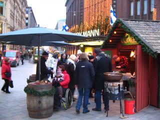 Опубликовано 25 декабря, 201014 г. comment_91347 В Хельсинки в День Независимости Финляндии (6 декабря) магазины были все закрыты. Зато можно было посмотреть на рождественские витрины, ёлки, установленные в самых неожиданных местах и, что очень важно в ненастный декабрьский день, попить глинтвейна вместе с празднично настроенными местными жителями на улицах! Или кофе в кафе, которые гостеприимно принимали всех желающих. Вот ещё нашла, но сама не видела - уже уехали к тому моменту из Хельсинки, а в Турку ещё не приехали ))) "6 декабря большинство финнов в окнах своих домов зажигают по две сине-белых свечи с 18 до 20 вечера. Точно источник традиции неизвестен" Жалоба