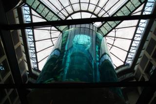 У него отдельный вход (в дальнем от Домского собора здании, на фото не виден); комплекс сотоит из двух связанных между собой стеклянной полусферой зданий, но "тот самый" лифт расположен как раз одном здании с гостиницей Radisson. Из примечательностей в Aquaree не только один лифт, а ещё множество комнат с аквариумами, мини-тоннелями (которых, кстати, нет в Аквариуме) и зеркальными лабиринтами. Интересно там, особенно детям, но нам пришлось эту красоту бегом пробегать - путь сюда и отсюда на автобусе №100 занимает 25-30 минут от Zoo...