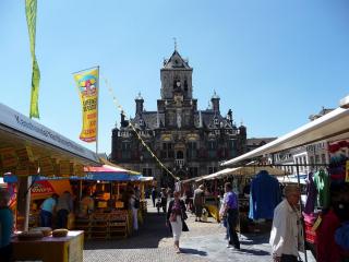 Идем смотреть достопримечательности. Рыночная площадь, говорят, что она самая красивая в стране (проверим), над ней возвышается 109-метровая колокольня Новой церкви, на которую можно подняться и полюбоваться красивыми видами сверху (правда, я читала, что подъем довольно сложный - винтовая лестница очень узкая и закручивается в разные стороны). Кстати, в Новой церкви – гробницы всех правителей Нидерландов и членов их семей, но доступ в крипту закрыт, зато можно войти в мавзолей Вильгельма Оранского – основателя нынешней правящей династии. Напротив церкви – Ратуша, по сторонам площади возвышаются красивые дома Делфтской знати, Палата весов (когда-то здесь взвешивали сыр) и Мясной зал (здесь, наверное, продавали мясо).